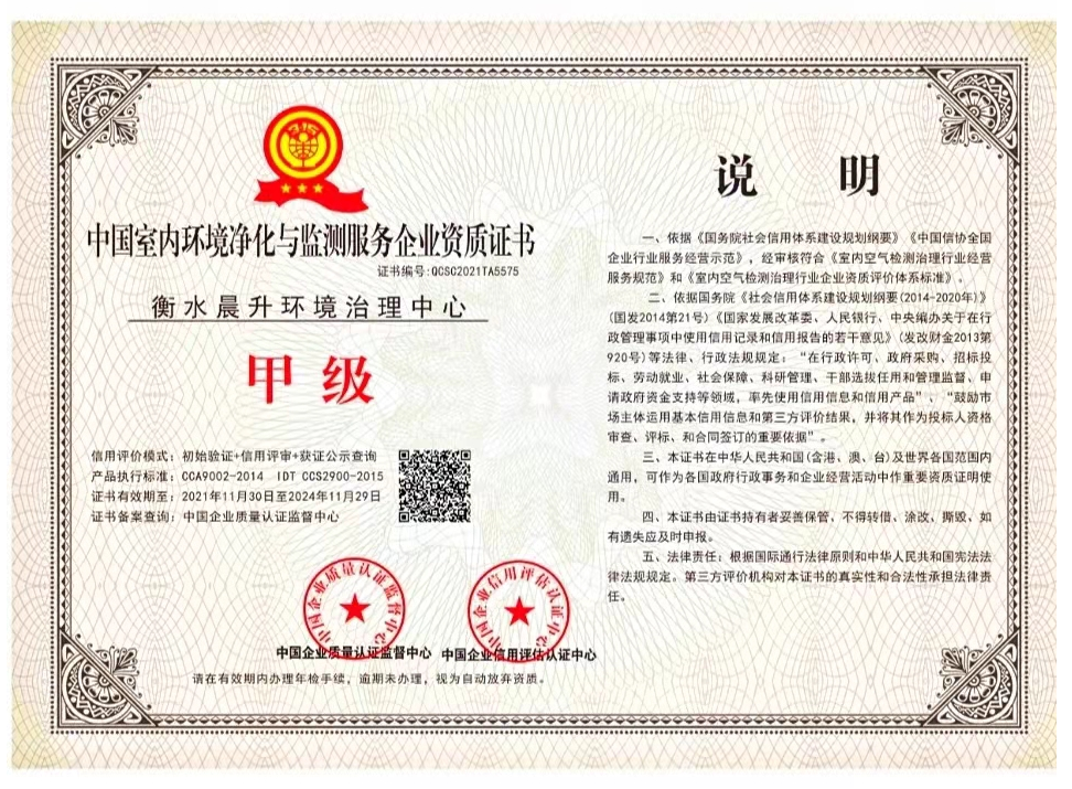 室內環境污染治理資質等級證書